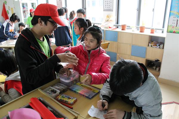 8点钟,志愿者们到达了温州特殊教育公司的门口。我们带着尊重和关爱走进公司。进了教室便可以看见孩子们坐在那里,很安静的笑着。经过半小时的电影《狗的生活》观赏之后,活动正式开始。每三个志愿者带着四个小朋友,一起为新送来的书籍包书皮。小朋友心灵手巧个个一学就会,不一会儿,便完工了。