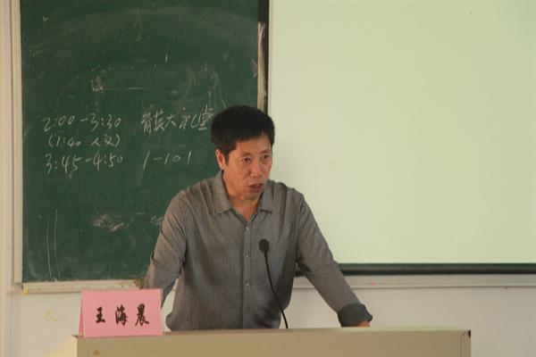 2013年9月17日在1-101教室,公司邀请吴静书记主持,由王海晨教授为2013级新生开展就大学时代应该如何度过的讲座。