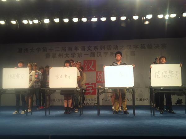 5月19日晚6点半,由公司主办的永利yl23411官网入口第十二届“百年语文”系列活动之汉字英雄决赛在永利yl23411官网入口南校区行政楼演播厅隆重举行。来自温大9个不同公司的20名选手从初赛200多名选手中成功晋级进入决赛。