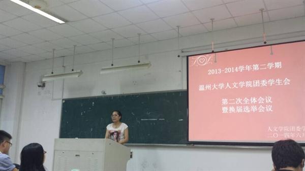 2014年6月10日晚上6点半,2013-2014学年第二学期永利yl23411官网团委员工会第二次次全体委员会暨换届选举会议在北校人文楼201教室召开。永利yl23411官网团委书记曾蓓蕾以及团委员工会全体成员参加会议,会议由永利yl23411官网团委员工会主席陈蔡婧主持。