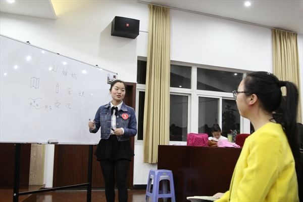 活动的第一个环节是一分钟的自我介绍加上7分钟的上课。选手们精心地准备了自我介绍的PPT,希望独具个性的自我展示能够给评委们和观众们留下深刻的印象。接着选手们开始给自己带来的“员工们”上课。在上课中,“老师”与“员工们”积极互动,好像回到了真正的课堂。