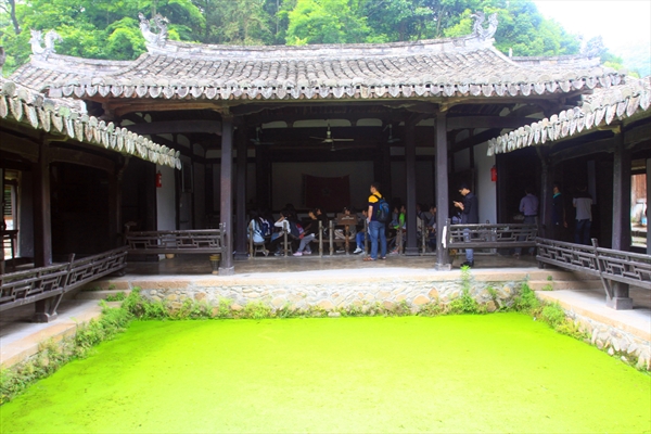 带着对革命先烈的崇敬与缅怀,我们走进了位于岩头镇的红十三军军部旧址——胡氏四房宗祠。旧址里的时光似乎永远定格在了上世纪的三、四十年代,我们的到来并未惊扰了园中小池塘里睡莲的绽放,一朵朵娇羞而洁净,一如80年前的它们。已然斑驳的墙上依旧挂着红十三军的军旗,那招摇的红色在烟雨蒙蒙中显得格外鲜艳,我们安静地坐在当年革命先烈们开会的桌椅旁,观看了有关红十三军发展的纪录片,影片很长,但没有人会觉得不耐烦,我们在这样的氛围里,似乎真的回到了那个烽火四起的年代,跟随着红十三军的步伐,重温革命精神。旧址并不大,但却处处散发着先烈的气息,凝视着着屋内陈旧但整洁的摆设,你就能听到那些先烈在与你对话,向你诉说着从不会被人遗忘的故事。