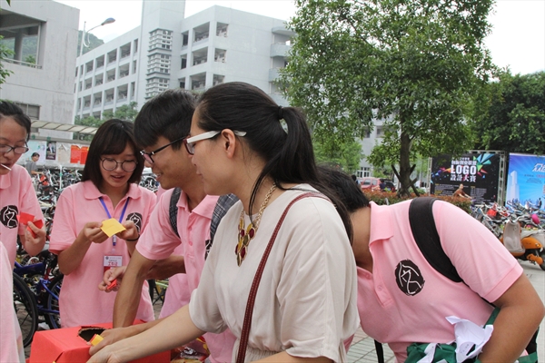 同学们面对文化长廊,都想试试自己的才气,踊跃参与答题活动。答题正确的同学兴高采烈,再接再厉去攻克下一关的难题;答题受阻的同学也是毫不气馁,继续在长廊中寻找自己擅长的题目,扬长避短。抽奖的场地上也是有人欢喜有人哀叹,工作人员成功送出了一个个精美的奖品,同学们收获了喜悦,也体味了文化。永利yl23411官网辅导员曾蓓蕾老师也来到了现场,感受到了热烈的气氛,也加入了答题行列。