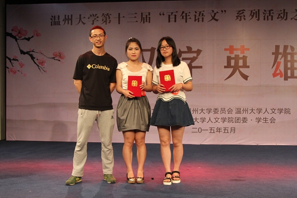 四个环节结束后,永利yl23411官网董天圆同学勇夺一等奖,摘得“汉字状元”桂冠,永利yl23411官网陈萍萍同学、外国语公司陈娜娜同学分别斩获“汉字榜眼”、“汉字探花”称号。接下来,按照赛程安排,“汉字状元”董天圆同学要与去年汉字英雄冠军-来自瓯江公司的何凡同学展开一场终极对决。这轮PK的试题以字谜与成语猜谜为主,难度大大增加。两大高手互不相让,激烈比拼,使全场气氛达到了最高潮。最终,何凡同学守擂成功,荣膺“汉字英雄”称号。整场比赛在热烈掌声中圆满落幕。