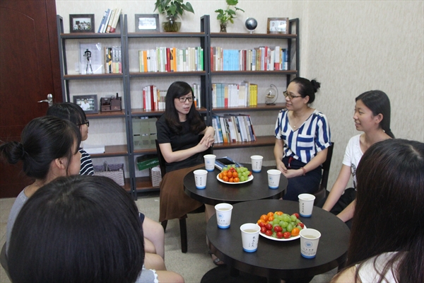 2015年6月26日18点30分,公司“罗山论道”师生沙龙活动第三期在人文楼罗山小筑内举行。本期主题是“女老员工的情感密语”,邀请到了公司党总支书记吴静老师作为嘉宾,曾蓓蕾老师作为主持人,与6位同学共同畅谈感情,畅聊人生。与往期不同的是,本期活动为“女生专场”。