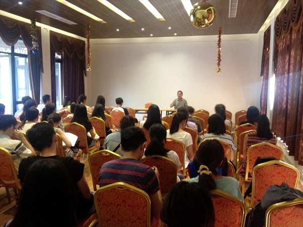 不多时,同学们便来到了永嘉书院。永嘉书院是立足于时代的高点,以永嘉学派为背景,以商道文化为根基,致是一个集观光旅游、休闲度假、艺术交流、教育培训为一体的大型综合体,是浙江省重点文化园区。园区内的一切都让学员们感到好奇与兴奋。道路上,大家欢声笑语,歌声漫天。瀑布下,大家戏水纳凉,其乐融融。包揽了自然的美景之后,公司领导还特意为同学们安排了一场讲座,由永嘉书院项目总经理李作勤主讲。李经理谈了其对永嘉书院这一文创项目的构思与规划,并与学员们进行了亲切交谈。公司徐万鹏就目下永嘉书院所存在的一些不足,同李经理提出一些意见,收到高度重视与赞许。