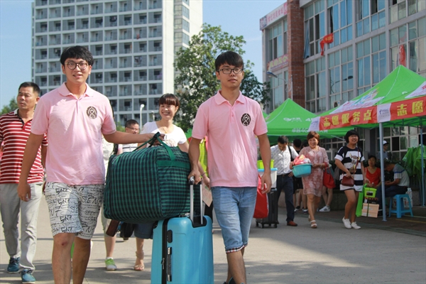 迎新工作中,我们身着粉红院服的团学成员们成为引人注目的一道风景线。他们顶着骄阳,不辞辛劳,穿梭于学区的各座宿舍楼间,帮助新生和家长搬运沉重的行李,表现出了学长学姐的爱心。他们得到了新生与家长的交口称赞。傍晚时分,随着当天最后一个新生的报到,公司迎新工作圆满完成。