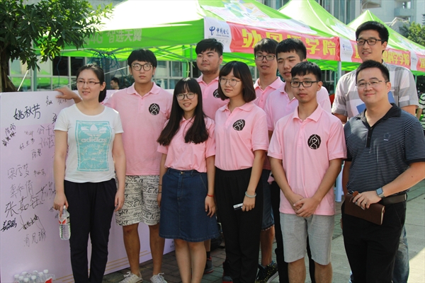 炎炎烈日,并没有抑制我们喜迎新生的热情。一批又一批新生与家长满怀期冀与喜悦来到公司迎新处,我们无不用微笑并致以最诚挚的欢迎,并努力在最短时间内完成新生报道注册工作。在团学成员的盛情相邀下,新生们在签名墙上留下了自己的名字,并与家长在签名墙前合影,以此作为自己在温大全新生活的绚丽开端。