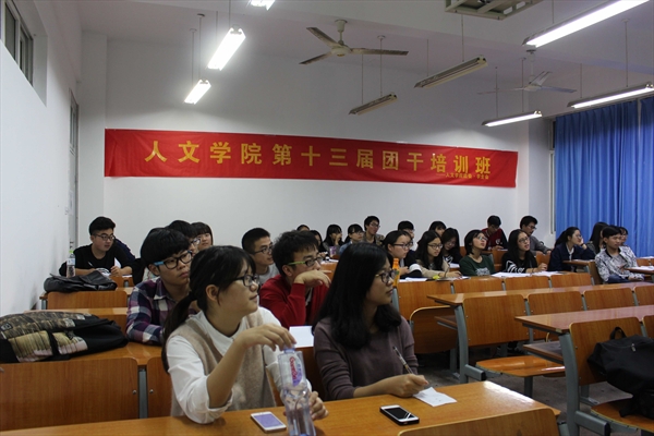 2015年11月18日晚6点40分,永利yl23411官网第十三届团学干部培训班第六课在人文楼105教室举行。本次团干培训由前人文团学团委副书记叶益如发表讲话。人文团学主席郭佳乐,团副沈亦炜及全体人文团学干事、大一各班班长、团支书参加了此次培训。