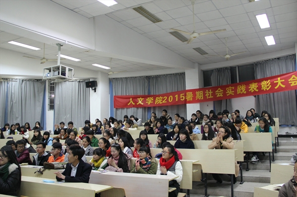 2015年12月16日18点30分,2015暑期社会实践表彰大会暨成果报告会在人文楼101教室举办,辅导员邢芳芳老师、2015暑期社会实践获奖同学及全体大一员工参加了本次报告会,会议由团学素拓部朱晓露同学主持。