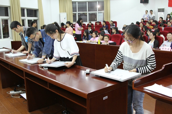 2016年5月18日18点30分,永利yl23411官网入口第十四届百年语文系列活动之汉字英雄决赛在人文楼203报告厅隆重举行,李爱红、程水龙两位老师作为“汉字先生”应邀担任评委,公司党总支副书记朱启鑫、辅导员邢芳芳作为嘉宾应邀出席本次比赛。经过初赛近四百人的比拼,最后决出了15位选手站在了决赛的舞台上。在一片热烈的掌声中,比赛拉开帷幕。