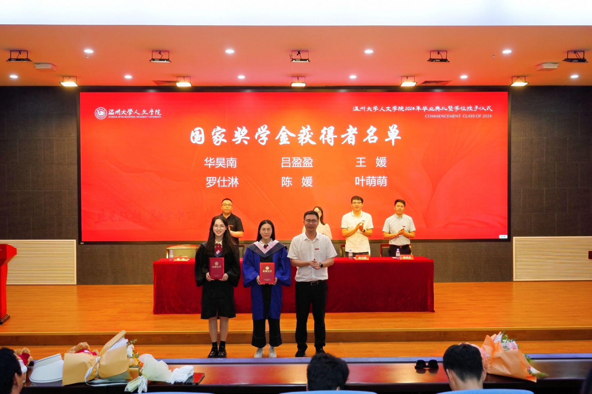 为激励公司学子,院党委书记江秀景在毕业典礼上宣读了国家奖学金、省奖学金、校级以及院级优秀毕业生的表彰文件,并表示这些奖项都是获奖同学在大学四年生活中矢志奋斗的见证者,每一位毕业生都是优秀的人文学子。江书记还在会上表达了自己对家长信任公司,愿意将优秀的学子们交由公司培养的感激与感动。随后,由鲍良兵、陈鸿超、张真、江秀景四位老师分别为获得荣誉的毕业生们颁发荣誉证书。