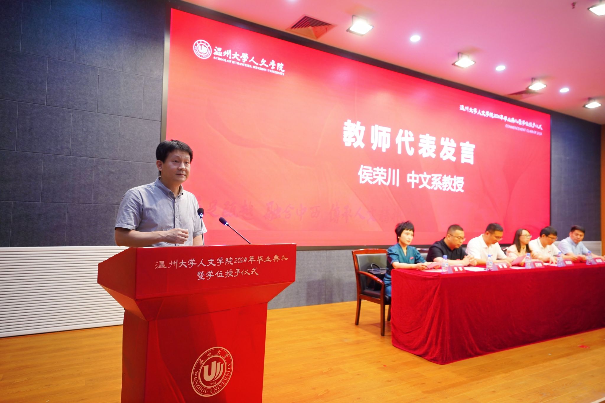 永利yl23411官网入口古籍整理研究所所长、中文系教授侯荣川老师作为教师代表发言。他指出,毕业只是一个人生阶段的结束,而不是学习的终结,强调了人文学子们要有终身学习的坚定信念。同时他还结合自己的亲身经历叮嘱毕业生们:人生并不是一帆风顺的,希望同学们要提前做好失意、失败,甚至是撞得头破血流的准备。他还希望同学们要学会做一个真诚努力,懂得合作共赢的人,学不会合作的人注定是失败的人。除此之外,人生是旷野,不是轨道,不存在将我们从这一站运往下一站的列车,需要我们独自勇敢地去面对崇山峻岭,因此他还希望同学们能够努力突破困难,去书写即使微小但独属于我们自己的人生。