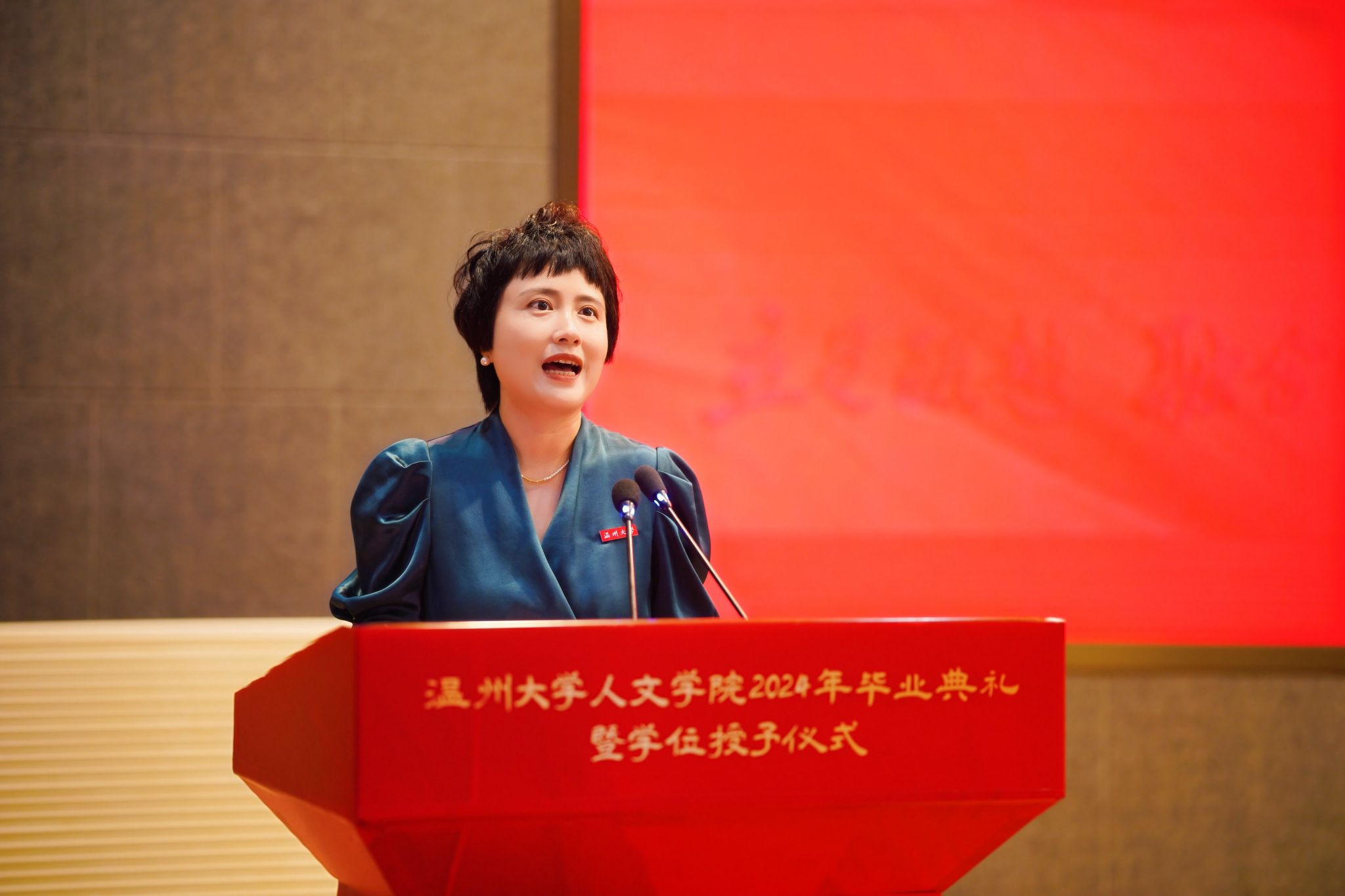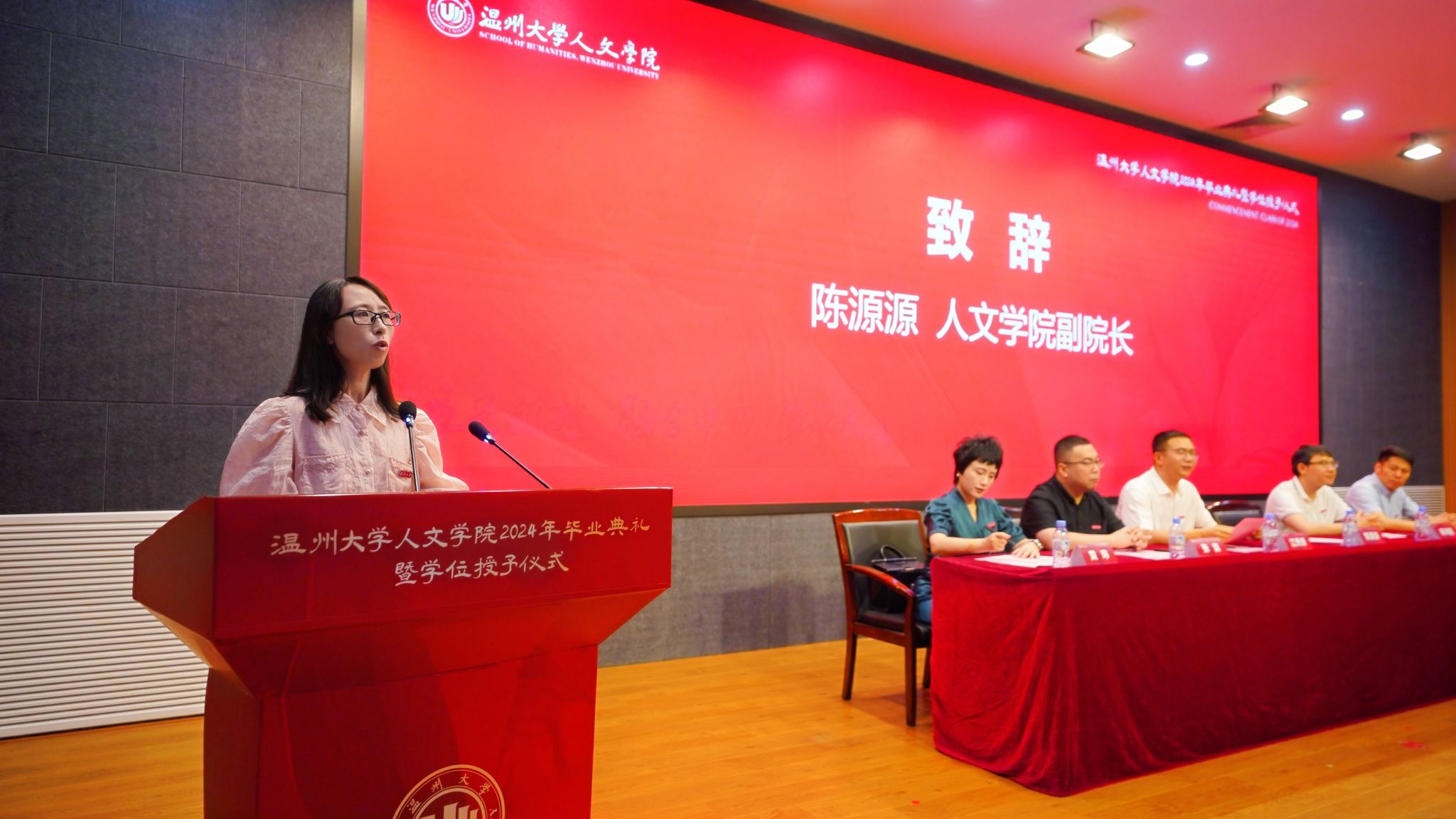 永利yl23411官网副经理陈源源致辞。她谨代表孙良好经理与公司全体师生向顺利完成学业的2024届毕业生表示最热烈的祝贺和最美好的祝愿。她表示,2024届毕业生不仅仅是永利yl23411官网的骄傲,还是人文精神的传承者。每一次探索、每一次挑战、每一次成功、每一次挫折都奠定了人文学子们今天的自信与坚强。同时,她还提出了四点要求:保持终身学习的态度,延续独立思考的习惯,坚守人文精神,保持积极向上的心态。无论走到哪里,永利yl23411官网永远都是人文学子最坚强的后盾。她期待在未来的日子里,人文学子们能够跨越一个又一个山海,创造一个又一个辉煌,衷心祝愿学子们的未来充满阳光,人生精彩纷呈。