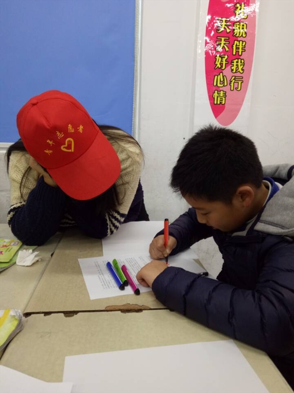 在早上7点50分志愿者们在高教园区始发站集合,5分钟后在确认所有志愿者到达后坐上了前往丽岙一小的公交车。在大约40分钟后到达了丽岙小学,在告知丽岙负责人后,志愿者们来到活动教室开始了现场的布置,在志愿者坐到分派好的位子后,孩子们来到了活动教室,选择好一起活动的志愿者们。志愿者和孩子们在5分钟内熟悉了彼此,紧接着主持人开始讲述活动意义并与孩子们进行了互动,孩子们的回应十分的热情。主持人的讲话结束,志愿者们分发下白纸和彩笔以及有关环保的文字材料。小朋友们开始和志愿者们讨论起手抄报的构想,在一段的不短的认真讨论后,孩子们开始着手画了起来,虽然孩子们的画笔略微稚嫩,但在志愿者们的帮助下,没有偏离环保的主题,萌发新芽的树枝像是在诉说着种下树木的喜悦,滴水的水龙头在纸上哭泣着自己的不幸,绿色的爱心微弱的搏动,却仍旧激荡着我们的心灵。孩子们的想法多姿多彩,不时让志愿者们感叹,虽然在活动的过程中有孩子表达了自己绘画的困难,甚至想要放弃,但是志愿者们坚持和教导下,还是提起了画笔勇敢的画下心中的想法,。与此不同的是,另外一些孩子们在创作的过程中坚持自己的主见,在极少依靠志愿者的情况下,完美的完成了自己的作品,当然最多的还是和志愿者的共同协作下顺利完成了自己的作品。而在手抄报上写上文字材料的时候,孩子们需要先阅读一边我们提供的材料,再进行选择抄写,目的是为了加深孩子们对环境和环保现状理解的加深,并由此提高孩子们环保的意识。虽然材料对孩子们有一定的难度,可小朋友们在志愿者的帮忙解读下明白了材料中的内容,还十分准确的选取了材料中的关键内容增添到了自己的手抄报之中。在一个多小时的协同创作后,孩子们富有童趣和精致的环保手抄报都已完成,在志愿者的强烈要求之下,孩子们带着自己的画作与自己的志愿者一起来了一张开心的合影,在每个孩子都拍摄完后,进行了集体的大合影,在等待着孩子们安全回家后,志愿者们收拾了活动现场,返回了公司。