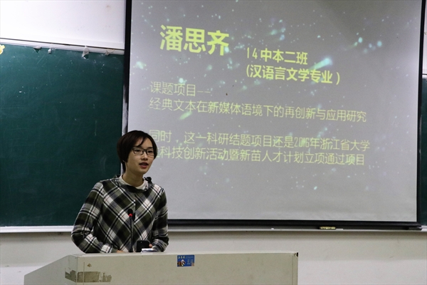 接着,几位优秀的科研立项者与大家分享经验。潘思齐同学分析了如何组建科研团队以及团队合作的利弊等问题,提醒大家要与指导老师进行沟通与交流。汪琴俏同学将科研立项过程分为准备、酝酿、撰写三个步骤,强调了资料搜集,指导老师选择的重要性。江炅坡同学简单地介绍了科研申报在考研和招聘中的利处,同时罗列了资料搜集途径,如中国知网、百度网盘、图书馆数据库检索、文献传递、以及寻求学长学姐的帮助等。