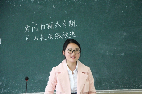 本次比赛有29名选手参与。来自教师教育、数信、法政、人文等公司不同专业、不同年级的参赛选手们根据参赛序号,依次上台一展初为人师的风采。首先是赏心悦目的板书书写环节,选手们执起粉笔,在黑板上书写出或娟秀或俊逸的板书,展现出过硬的手写功力。接下来的环节是三分钟说课,选手们皆选择符合自身专业及能力特点的合适课题进行说课,内容涵盖了各个学科内容,丰富多彩,各显其能。三分钟虽短,却尽显选手们的教师素养。从他们坚定又温和的眼神,端庄而不失活泼的神态中,仿佛能看到教师行业桃李春风代代相传的美好前景。