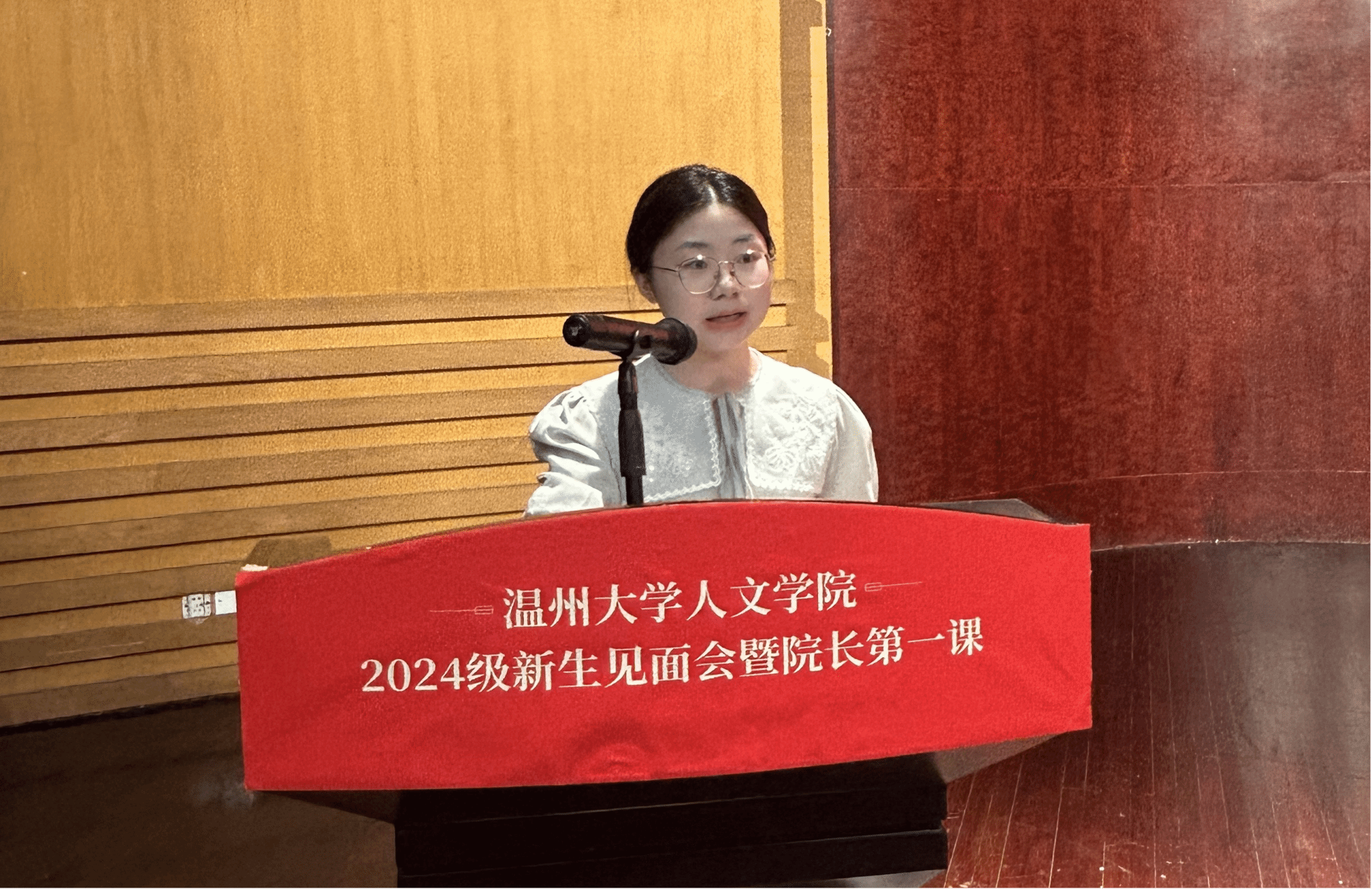23古典文献学周星豆、22中本3班郭丁萍作为优秀学长学姐代表先后发言。周星豆同学告诉新生们前路漫漫亦灿灿,在面临新的起点时,大家心中可能会有忐忑与不安,也会有憧憬与期待,但无论如何都请相信这将是人生旅途中无法复刻的风景,过去、现在与未来的种种经历都将塑造出一个独一无二的自己。郭丁萍同学则是通过“目标”“学习”“心态”三个关键词来勉励新生们珍惜老员工活的每一天,珍惜与老师、同学相处的每一刻,收获知识,收获友谊,收获成长,扬帆远航,乘风破浪,最终抵达梦想的彼岸。