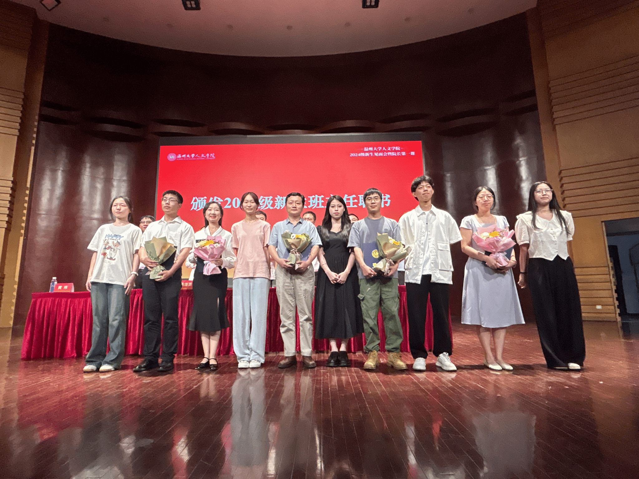 随后是2024级新生班主任聘书颁发仪式,由陈源源副经理为新生班主任们颁发聘书,现场响起了经久不绝的掌声,彰显了新生们对于班主任们以及大学新生活的蓬勃意气与憧憬期待。