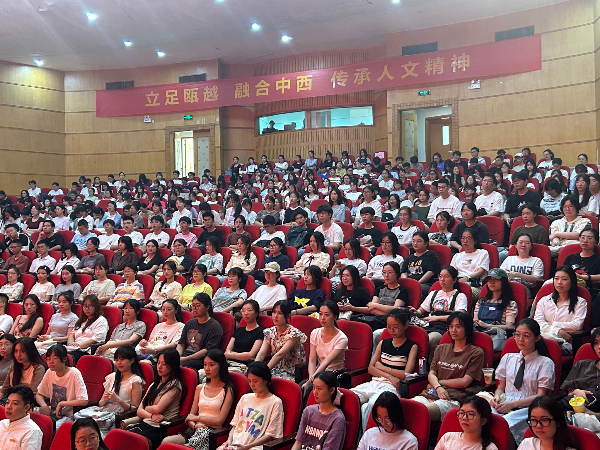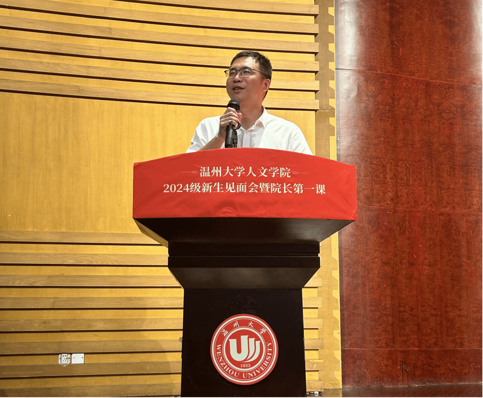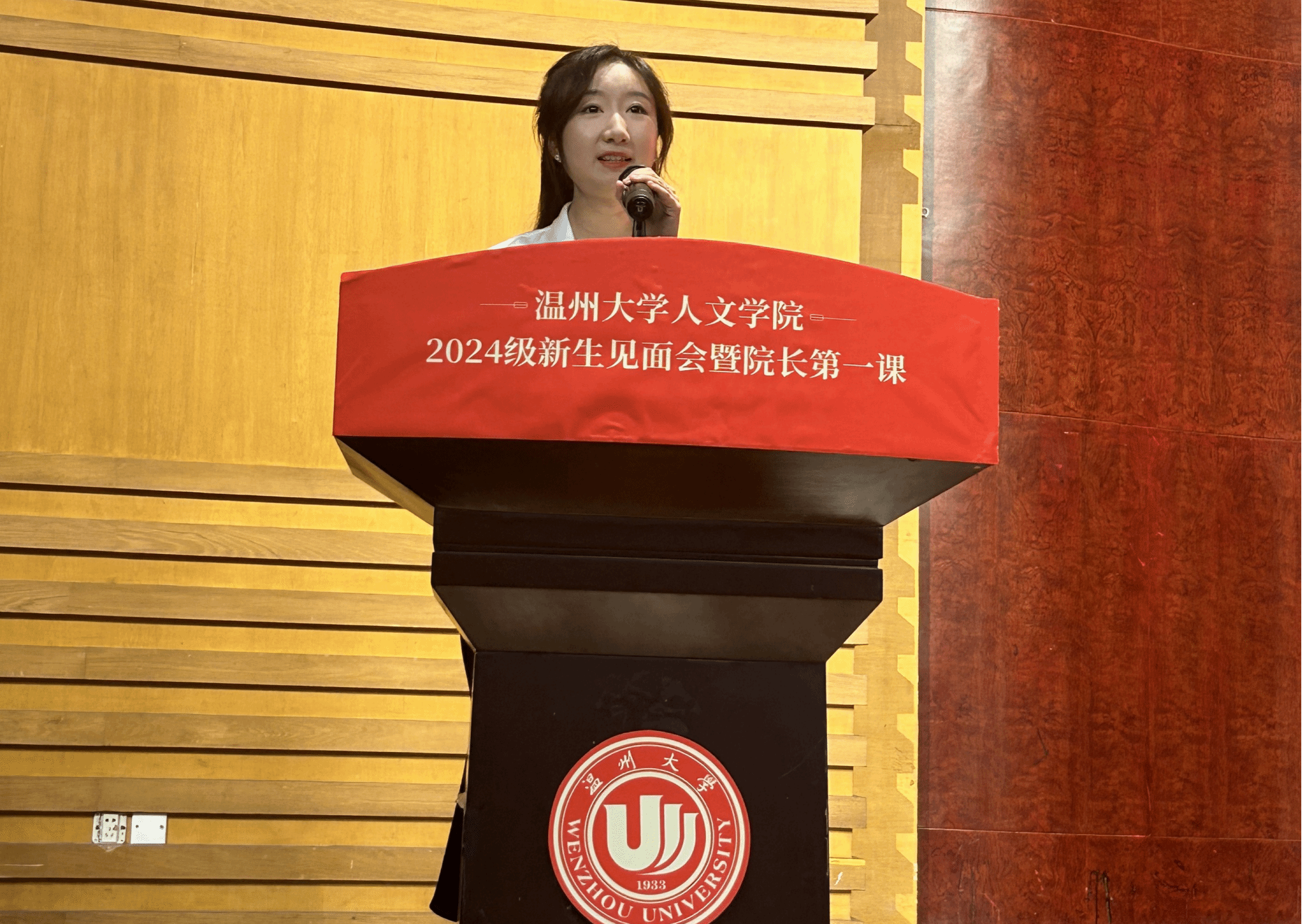教师代表赵天骄老师在发言中指出大学是一个包容、追求全面发展的地方,同学们将会在大学获得自我徜徉的机会。她通过自己不断在大学各种途径追求戏曲学习,最终成为一名戏剧学学者的亲身经历,鼓励每一位新生找到自己向往的发展方向,达到全面发展的目标。随后,她又为同学们追求全面发展指出了努力方向。她提出,全面发展离不开自主学习的能力,要善于整合资源,还要做好职业规划与人生规划,尽早关注招聘信息,提早做好就业准备。更重要的是,在完成课业学习的同时,不要忘记培养自己的社会责任感和家国情怀,不仅要追求个人的卓越,更要将个人的梦想与国家的发展紧密相连。“少年意气慕千秋,拟作人间第一流”,赵天骄老师引古人之言祝愿新生们在老员工活中不负韶华,奋发图强,与新时代同向同行。