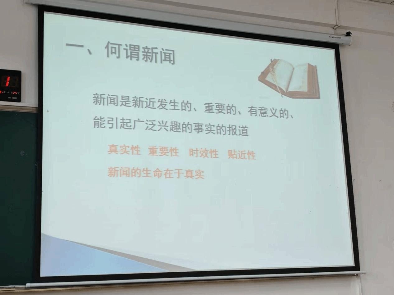 金丹霞老师首先阐述了新闻的概念,要求通过真实性、重要性、时效性和贴近性四个标准来衡量新闻的价值,决定新闻文体。金老师同时强调了新闻六要素对于新闻写作的重要性。