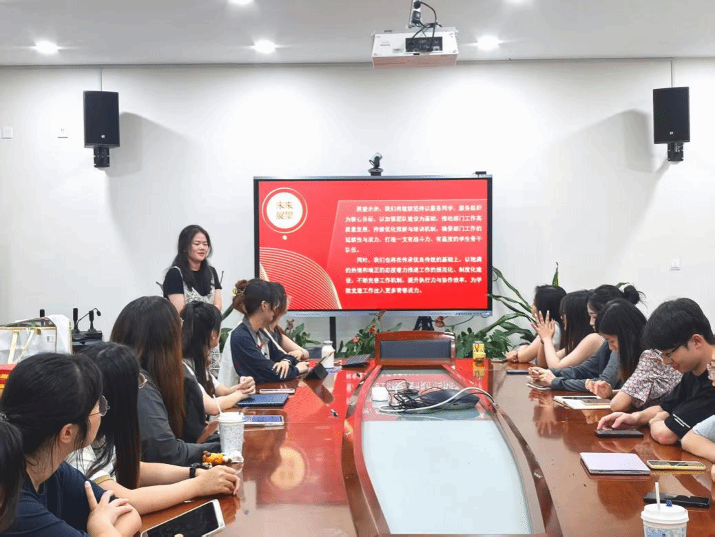 会议由吴嘉洁同学主持。新一届主任及各部门新任部长依次上台,围绕强化部门协作、优化工作流程、加强团队建设等方面阐述履职规划,展现责任担当。