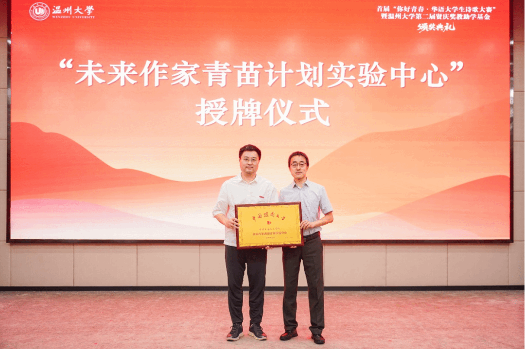 徐峙先生与永利yl23411官网孙良好经理共同揭牌“未来作家青苗计划实验中心”,为热爱文学创作的员工提供更广阔的发展平台,助力校园文学人才培养。受邀嘉宾纷纷上台,为第二届“你好青春·华语老员工诗歌大赛”的正式启动按下手印。