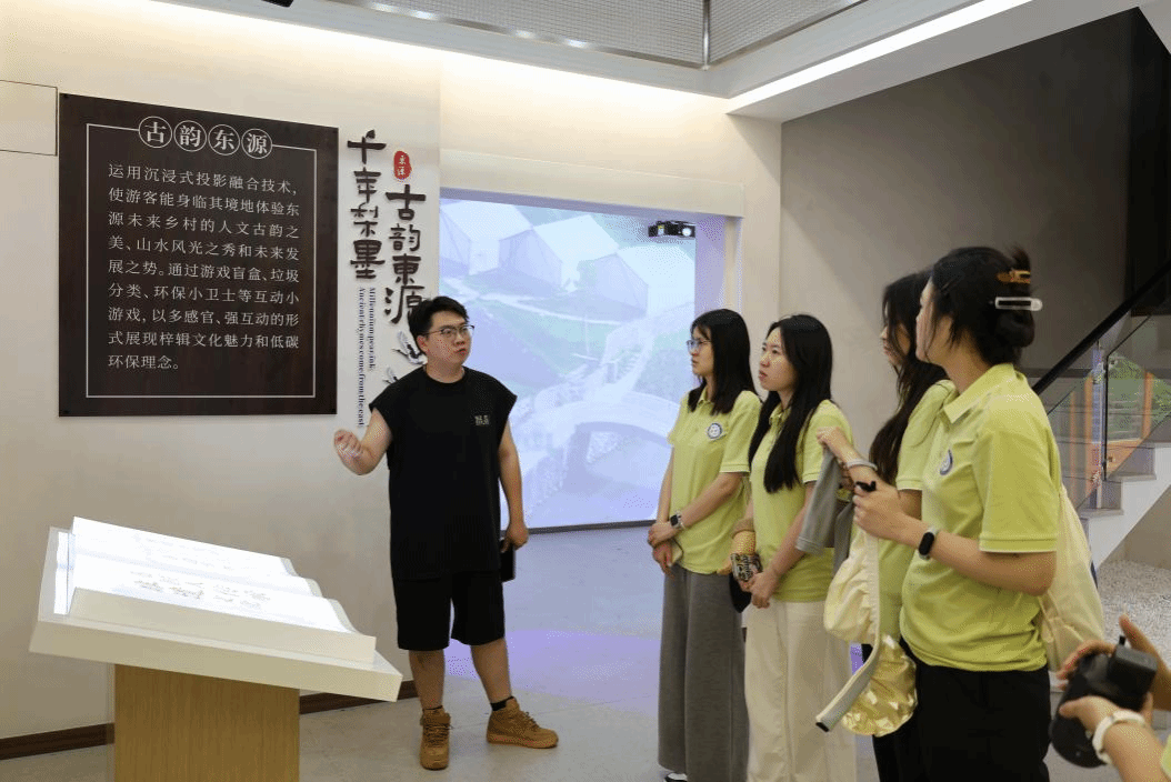 伴随着细雨,实践队踏入了东源谱牒梓辑文化馆。在“00后”非遗传承新人潘昱丞的讲解中,实践队队员们感受到了数字时代与“非遗”传统碰撞的文化魅力,双屏互动技术以更具创新性的方式让百家姓“活”起来。从宗族谱牒的“梓辑”工艺到Z世代追捧的活字文创,木活字印刷术以数字化、年轻化、时代化的新表达,实现了“守正”与“出新”的完美平衡。