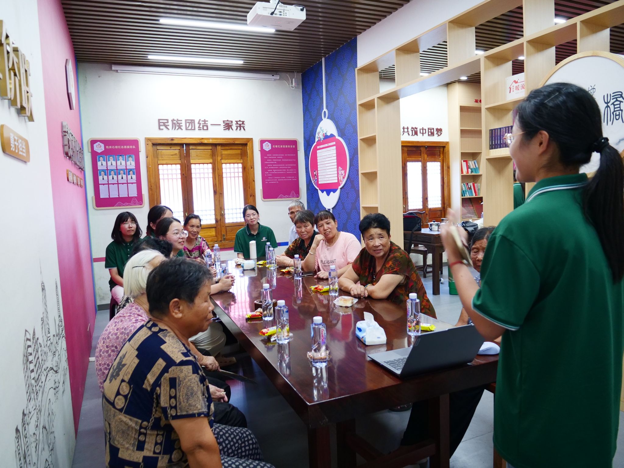 推普活动在“数字送福”中拉开序幕。“爷爷奶奶,咱们选个喜欢的数字,用它组成一个表示吉祥的成语,好不好?”一位老人笑眯眯地选了“8”,队员立刻接过话头:“‘8’是‘八方来财’,好兆头!”通过精心准备的PPT,队员依次展示了包含数字元素“一”到“十”的吉祥成语。数字与成语的巧妙结合,让发音练习变得有趣起来。当“八方来财”的祝福脱口而出,当“十全十美”的盼望被反复诵读,原本让老年人觉得生疏的普通话逐渐变得亲切起来,成为了传递美好寓意的纽带。