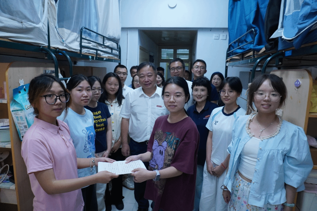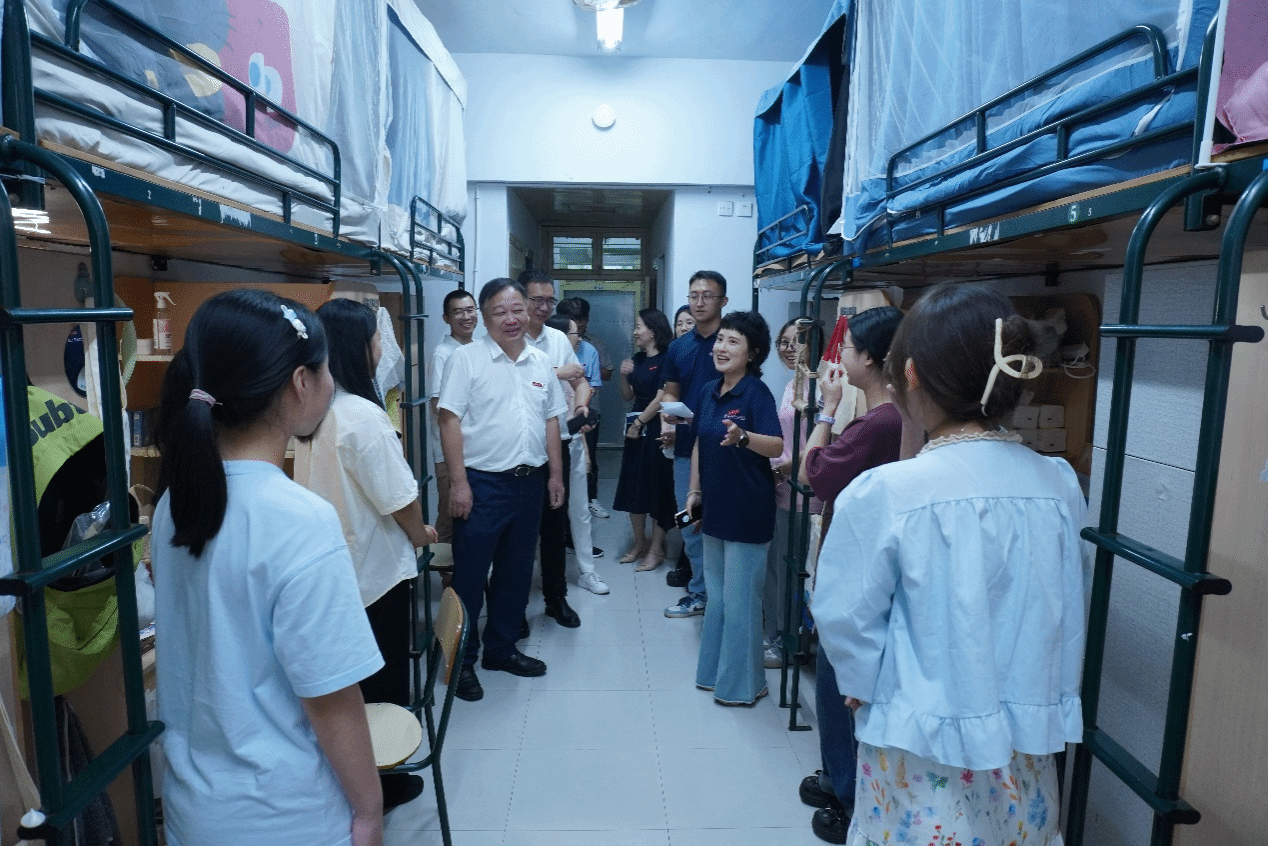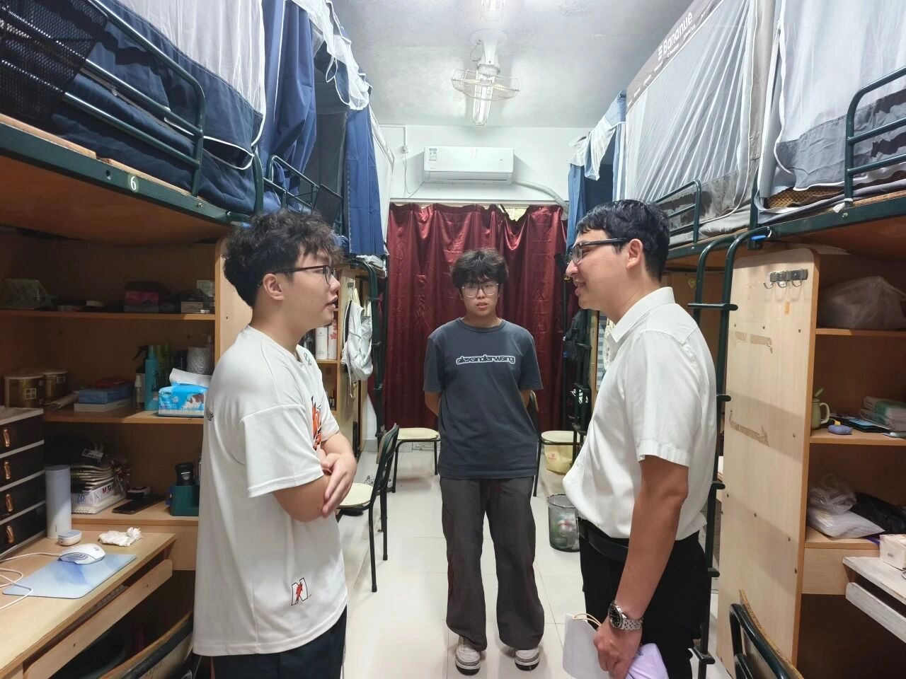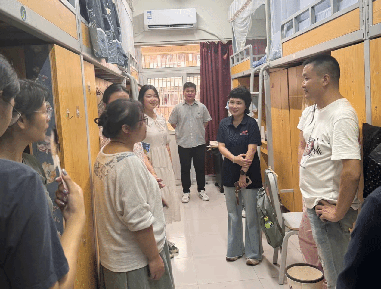 在董事长走访之后,公司领导班子、各班班主任以及辅导员团队同步深入新生寝室,开展走访与交流工作。他们逐一走进全院每一间新生寝室,与新生及陪同的员工家长进行密切沟通,详细了解新生的入住情况与适应状态,为他们解答关于大学学习生活的疑问,让新生和家长切实感受到公司的关怀。