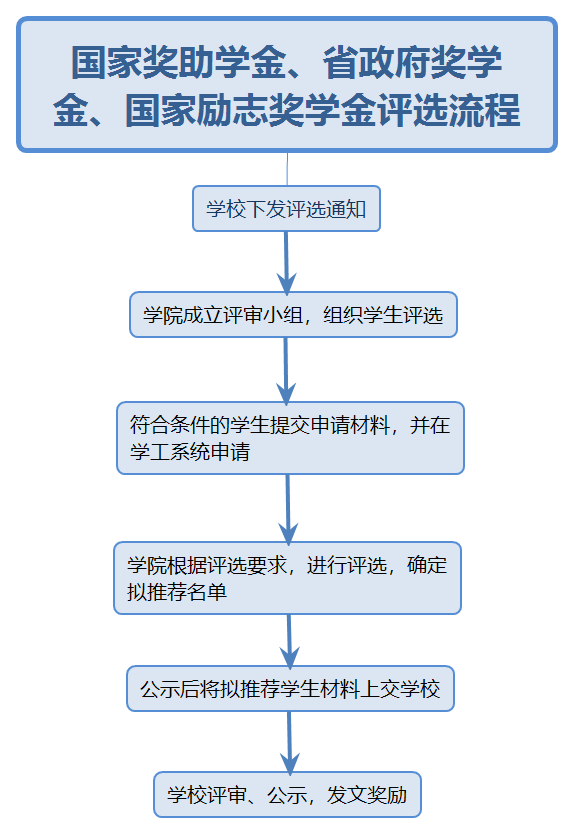 国家奖助学金、省政府奖学金、国家励志奖学金评选流程