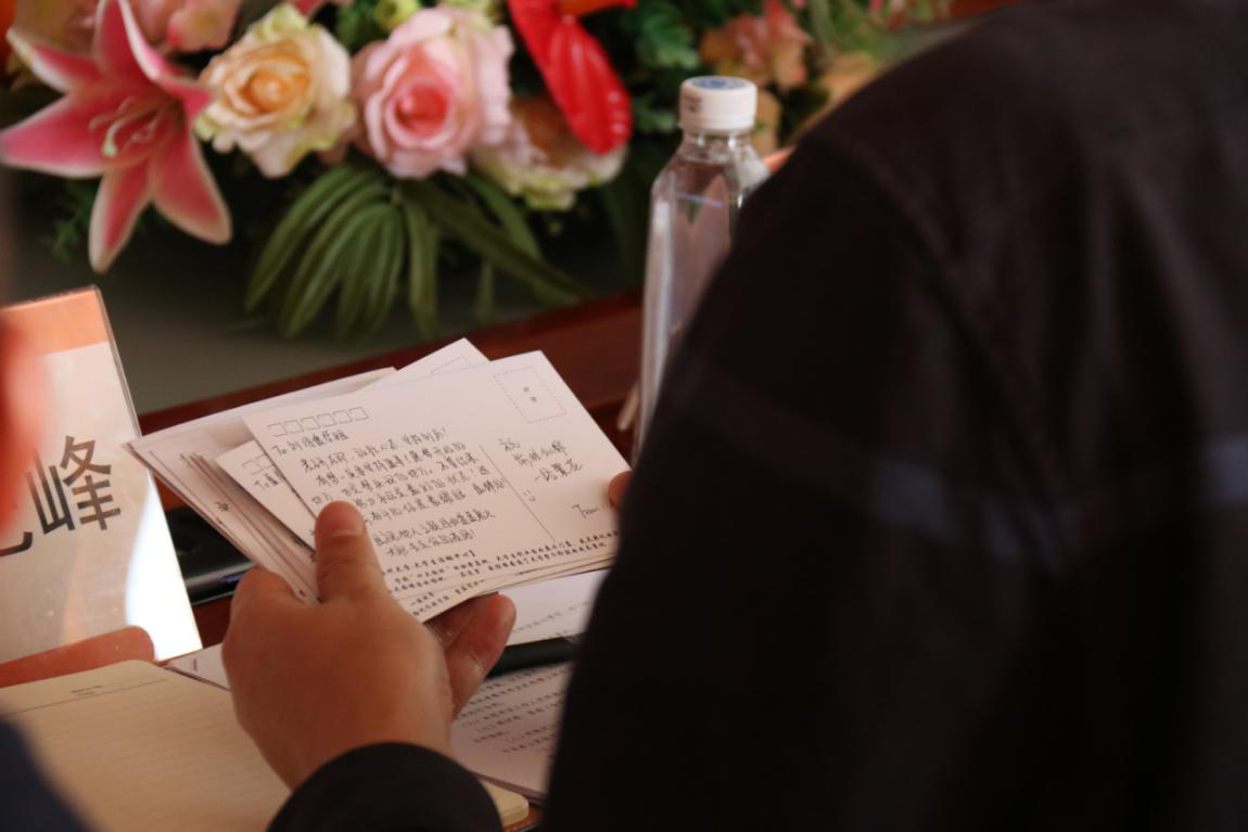 大会上,刘纪峰老师首先对考研员工进行了考研诚信教育,他向同学们强调了考研诚信的重要性,并通过具体又真实的例子说明了考研前心理调节的重要性,告诉同学们在考研前要保持良好的心态,以积极健康的心态应对考试。紧接着,考研帮扶队的代表崔梦鸽同学从考试时间、考试科目准备、考试期间作息调整三方面分享考研心得。最后,魏一书记对考研学子表达了殷切关心和期望,并嘱咐大家调整好自己。“多少个日日夜夜,多少个风风雨雨,多少次我们挑灯夜战,一路走来,大家也付出了很多,我也相信辛勤的耕耘终会有回报,相信大家的梦想终究会实现。”公司精心准备的考研大礼包,也蕴含着公司独特的人文关怀,大礼包中的文具体现出公司老师对于同学们考研的重视,那印在笔上的“逢考必过”是老师们对广大考研学子最诚挚的祝福;而那一张张由大三员工写满祝福语的明信片,也展现出公司员工之间的深厚情谊。