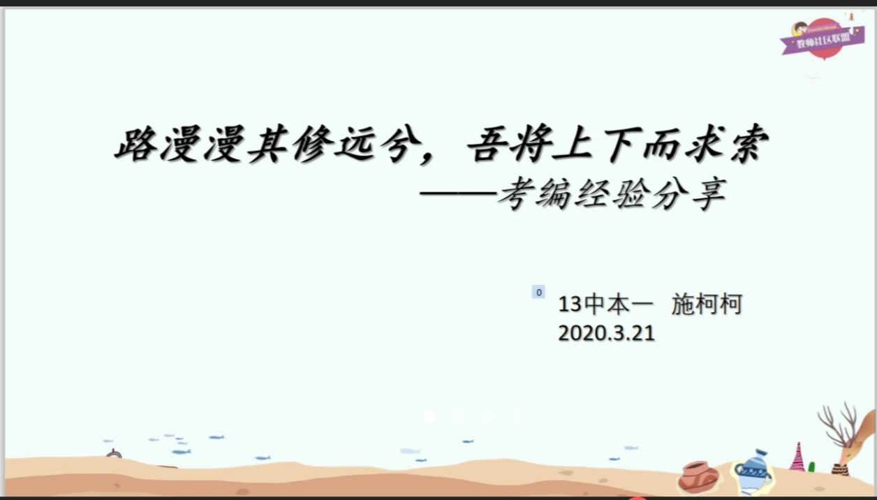 活动伊始,魏一书记充分肯定了本次活动的意义。他指出,就业是摆在同学们面前的一份考题,必须引起大家的充分重视。随后,员工分享自己的考编经验。现就职于杭州市三墩小学的施柯柯员工,首先用一句“路漫漫其修远兮,吾将上下而求索”来为她的考编之路做了注解,她结合自己的考编经历为同学们进行了介绍,主要包括考编时的笔试面试以及参加杭州教师考编时考虑的各种因素,并提醒同学们要多投简历、多参加面试来积累经验,注意自己心态的调整,也可抓住代课的机会来了解公司、提升自己。骆雪娟员工现就职于杭州采实教育集团,她主要从准备和应考两个方面介绍了自己的考编经验,她说:“以最大的热忱拥抱星空,光会随之而来。”关于考编之前的准备阶段,骆雪娟学姐建议同学们要有扎实的学科知识和师范素养、广泛的实践经验并进行系统的反思。在应考时,提前了解当地的招考信息,做好笔试和面试的准备十分重要。