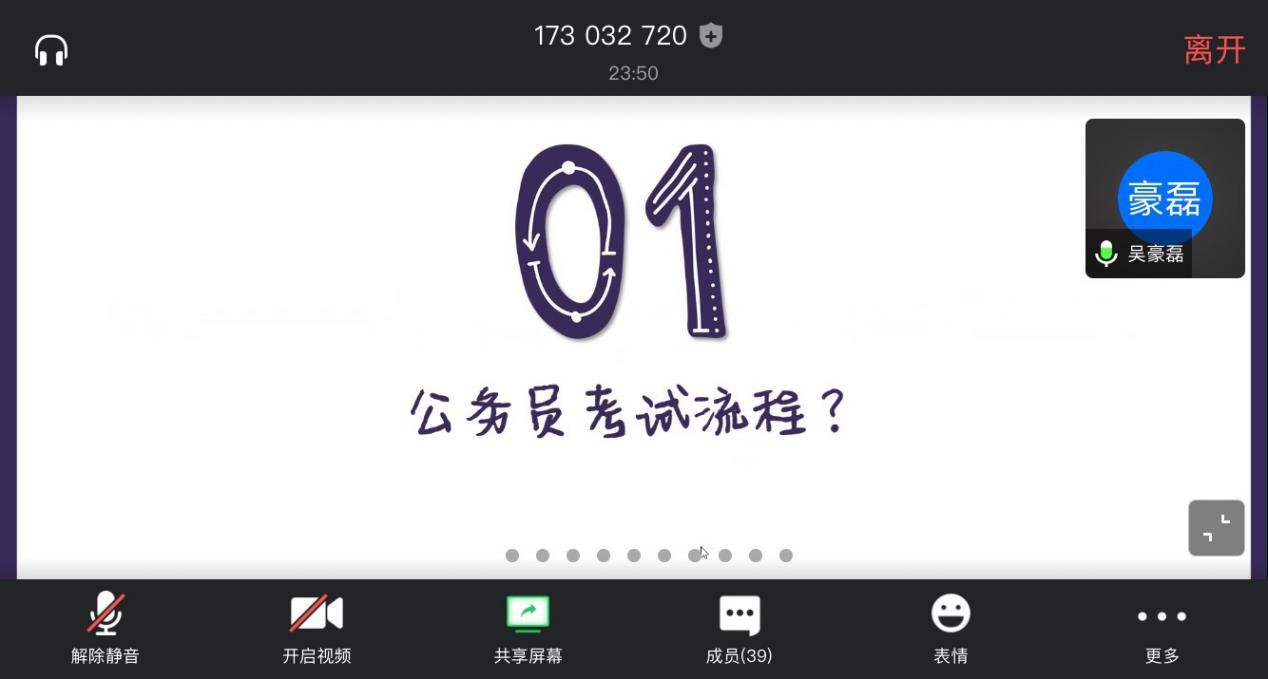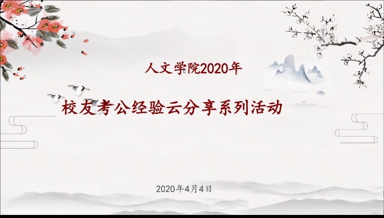 为了帮助同学们更好地备考公务员考试,公司于2020年4月4日19:00开展了员工考公经验云分享活动,这也是2020年员工考编考公经验云分享的最后一期活动。院学工办主任刘纪峰、辅导员李丹萍、两位分享员工和部分有意向考公的员工参加了此次活动。