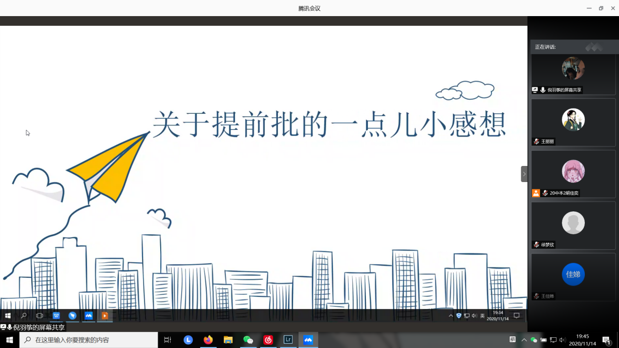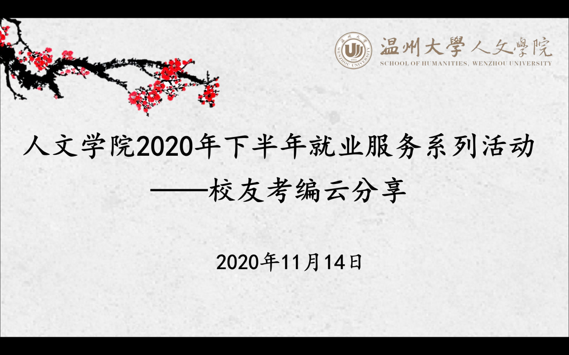 2020年11月14日晚6点30分,公司“2020年下半年就业服务系列活动之员工考编云分享”在腾讯会议上正式拉开帷幕。参与此次分享会的有院学工办辅导员李丹萍老师,4位优秀员工以及有考编意向的80余位同学。