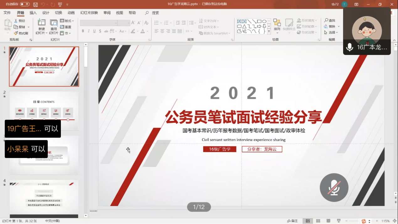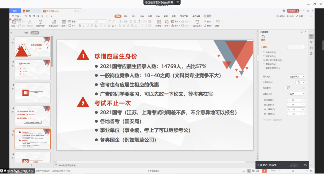 2020年11月21日晚6点30分,公司2020年下半年就业服务系列活动之员工考公云分享在腾讯会议上如期举行。此次公司特别邀请三位考公顺利上岸的员工进行经验分享。