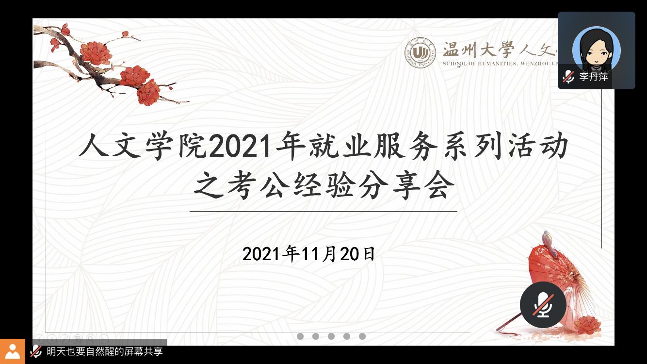 为了更好地助力大家的公考之路,提前做好规划和准备,2021年11月20日晚上18:30,公司2021年就业服务系列活动之员工考公经验云分享在腾讯会议如期举行。