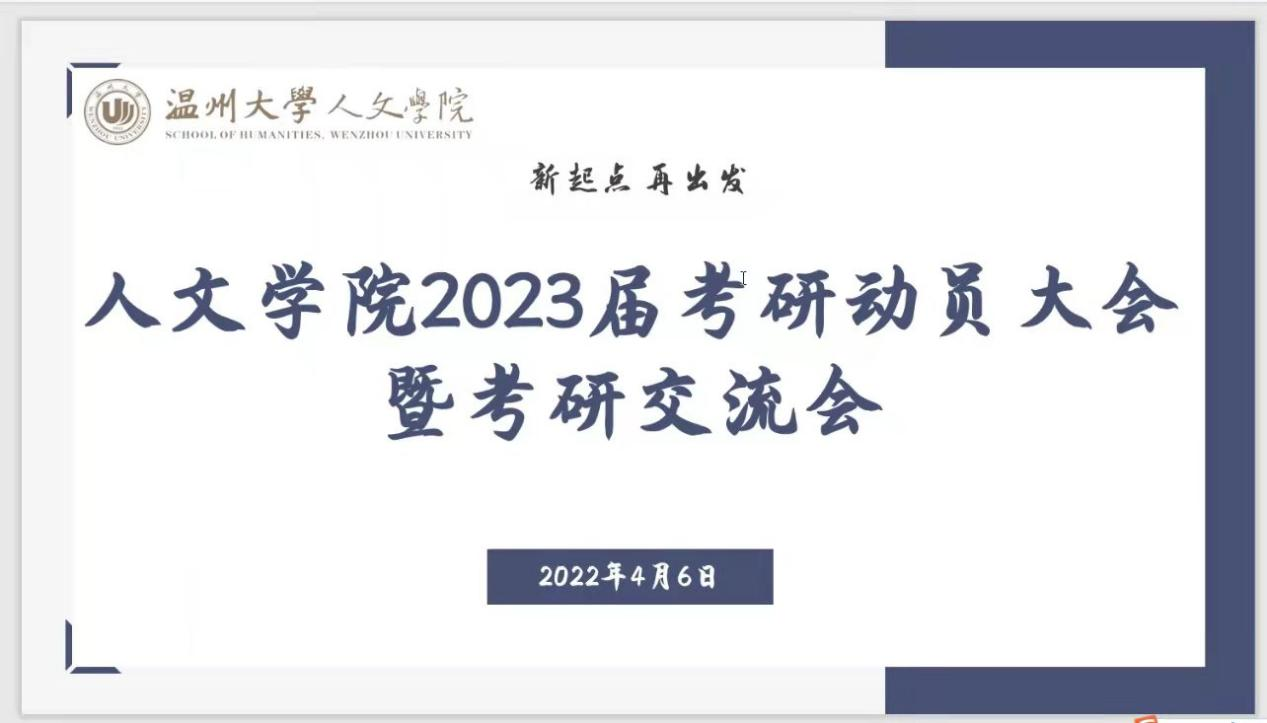 为了充分调动同学们的考研积极性,明确考研目标与方向,更好挖掘自身潜能,2022年4月6日下午,公司举办了2023届考研动员大会暨考研交流会。根据疫情防控要求,本次大会采取了线上线下相结合的方式,线下地点为人文楼213会议室,同时开启腾讯线上视频会议。公司党委副书记魏一、院学工办辅导员李丹萍、四位优秀研究生代表以及意向考研的同学共200余人参会。
