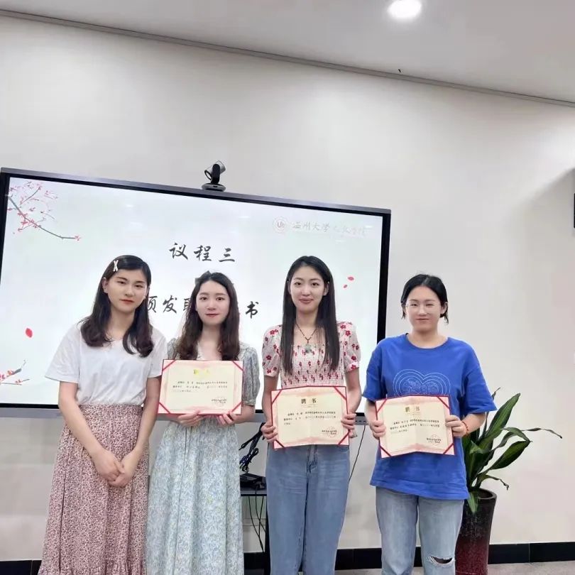 会上,陈媛做上学年工作述职报告。她指出,过去一年,永利yl23411官网员工工作服务中心各部门上下团结一致,完成了自身组织架构的建立以及部分员工访谈、员工系列文案推送等工作。在接下来的一年里,我们将继续克服困难,砥砺前行。随后,办公室部长季莹和实践服务部部长洪宇星做工作述职,总结了上年度的工作和不足,提出了未来一年的工作设想。员工工作服务中心指导老师李丹萍为陈媛、季莹和洪宇星颁发了聘任证书。