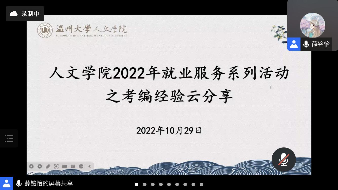 考编是许多员工的就业之路,但初踏考编路时我们难免会心生迷茫,为切实解决同学们在备战考编时遇到的难题,公司于2022年10月29日晚18:30在腾讯会议开展就业服务系列活动之员工考编经验云分享活动,吸引了100余人参与。