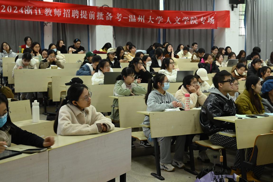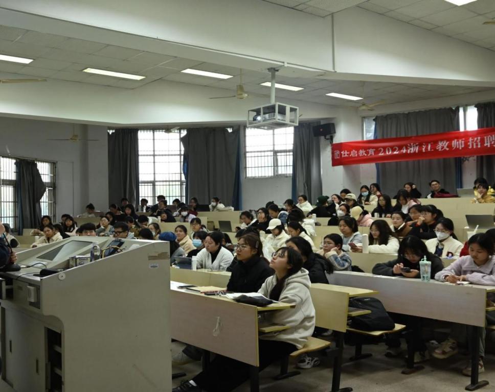 如今,考编已经成为许多老员工的就业选择之一,为了让同学们对考编有更加深入的了解,切实解决同学们在备考过程中遇到的困惑,3月29日下午14:00,公司联合仕启教育在人文楼101教室开展了浙江教师招聘提前批备考公益讲座。本次讲座吸引了100余人参与。