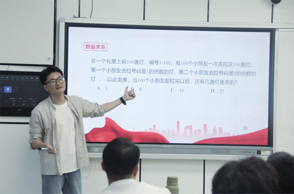讲座伊始,黄老师从当下社会就业形势出发,结合相关数据为我们简要分析了考公的优势和趋势,并对公考政策、升学形式、备考时间进行了详细解读。他以2023年浙江省考为例为我们展现了公考的具体流程,并就笔试行测环节结合历年真题为我们细致讲解了判断推理、数量关系、言语理解等五类典型题型。他提到,虽然行测题量较大但试题难度具有阶梯式分布的特点,同学们应当合理分配作答时间,有所取舍地进行答题。黄老师以备考计划的制定为着眼点,对了解考试、系统学习、习惯养成、实战演练四阶段的核心目标逐一进行阐述,为同学们指明了一条科学的复习路径。