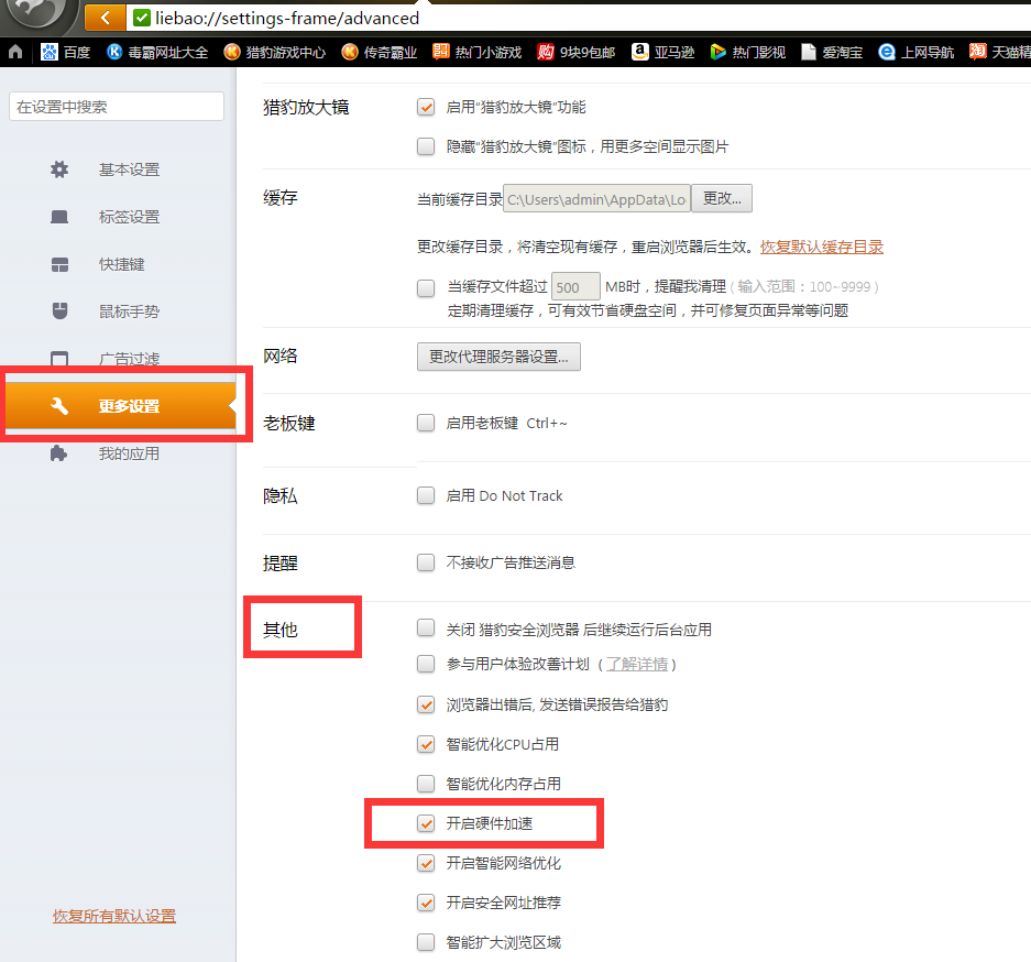 三、猎豹浏览器开启硬件加速方法