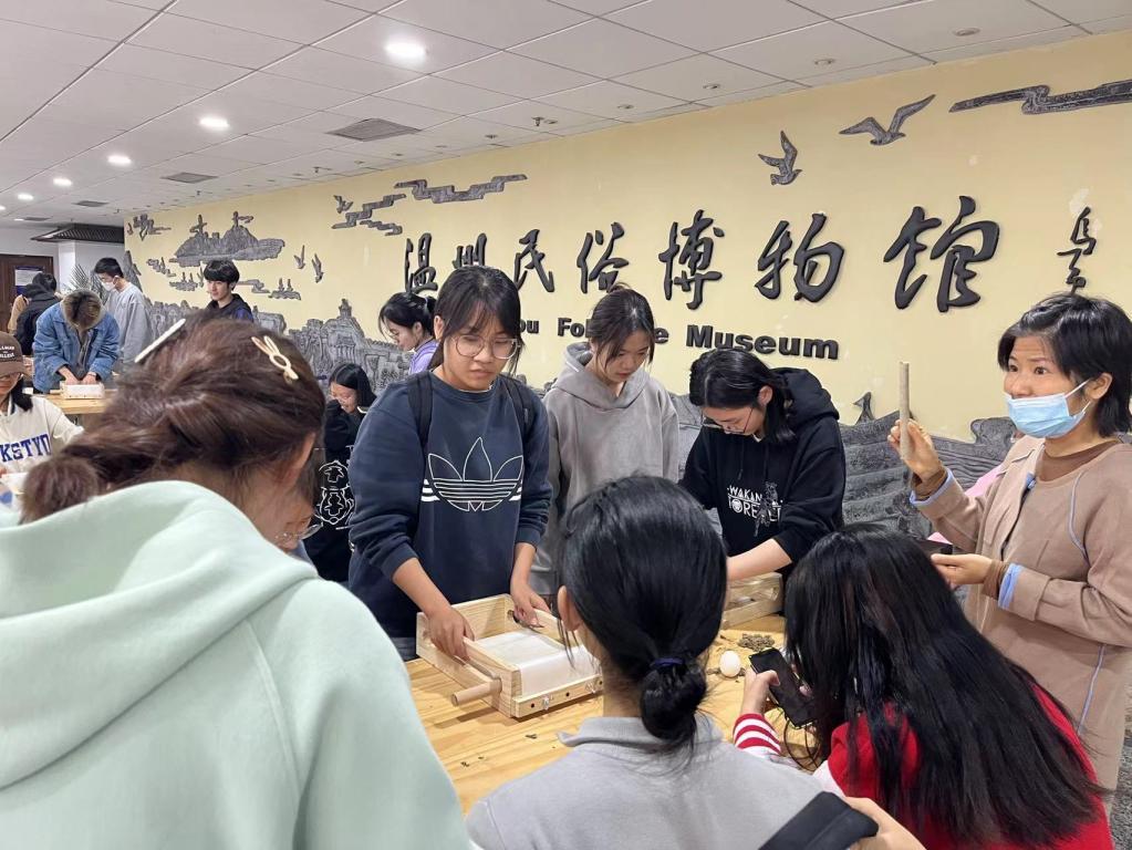 “手造温州”这门劳动实践课将温州地方特色手工艺制作引进课堂,实现了民俗文化熏陶与劳动教育的有机结合。“可以吃,可以看,可以做,这门课真的挺有意思的!”接下来,温州传统手工艺人还将带领同学们继续学习彩泥塑、发绣、吹糖人等传统技艺。