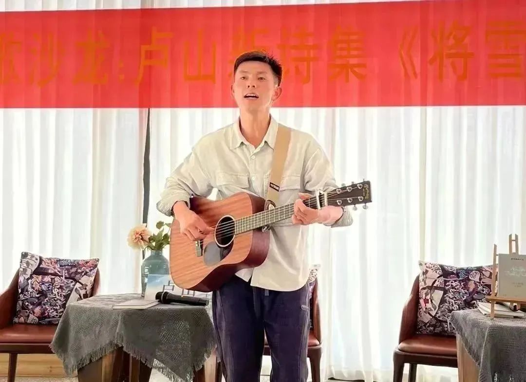 活动伊始,卢山向永利yl23411官网赠送了诗集,诗人兼音乐人无香为分享会献唱了一首受卢山诗歌启发而作的原创音乐《塔里木之歌》。新疆兵团作协副主席、第一师阿拉尔市文联主席霍玉东和新疆兵团第一师阿拉尔市作协常务副主席老点,为卢山远程发来了祝贺视频,永利yl23411官网入口公司党委书记江秀景发来贺词。随后,来自创意中文的五位员工代表朗诵了卢山的代表作品。