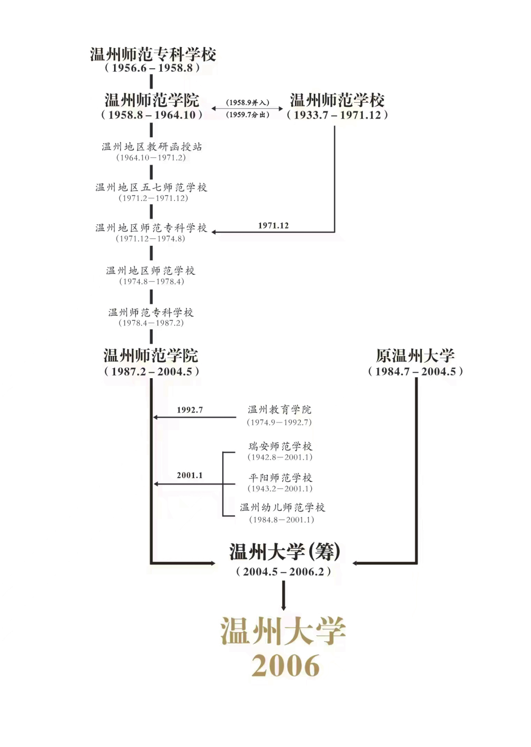 大哉师道天下尊,承往哲兮启后人。东海水,雁荡山,我温大精神,浩浩荡荡。自1933年黄溯初先生捐出私立郑楼小学全部校产给浙江省教育厅、省厅创办温州师范公司以来,永利yl23411官网入口与国家、民族的坎坷命运一路风雨同行。伴随着抗日救亡、全国解放、民主建国、改革开放、科教兴国一个个重大的历史事件,走过了“两校合并、七校融合”的沿革变迁。这九十年,永利yl23411官网入口历尽坎壤,从偏隅一方的“小学堂”,蔚为泽被浙南的“大学府”。一路风尘一路歌,校地虽几经变迁,校名虽多次变换,但恒久不变的是温大“求学问是”的文化底蕴与“敢为人先”的拼搏精神。