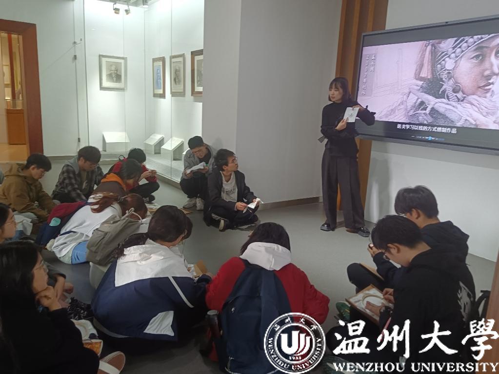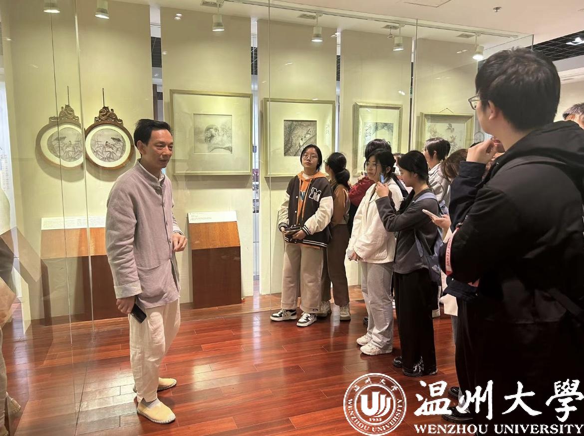 来自温州市发秀技艺传承人孟永国老师和郑媚媚老师先带大家参观了发绣馆,一边介绍发绣作品,一边向同学们讲述温州发绣的历史渊源和发展过程。看着橱窗里一件件精美又逼真的发绣作品,同学们发出了此起彼伏的赞叹声,面对同学们的夸赞,两位老师向大家说起温州发绣的独特意义:“头发被古人视作生命的部分、精神的代表,其绣制的礼物具有丰富的民俗内涵和独特的传情魅力,被认为是对受赠者的最高致意”。