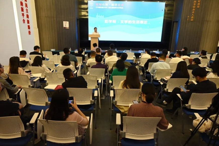 4月20日上午9点,中国作家协会创联部主任彭学明在苍南书城 · 委员会客厅为与会者带来了主题为《文学的生活表达》的讲座。他结合自身文学创作经历及文学作品,围绕如何让文学表达生活、高于生活作交流分享。他着重讲到:“在文学写作中,要学会组装生活、过滤生活和提纯生活;好作品一定要有世俗味、烟火味、人情味,尤其写好人情味,文学作品才能深入人心。”