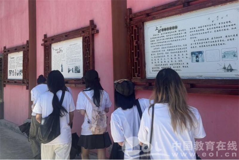 实践队成员认真听讲解员介绍知青纪念馆