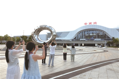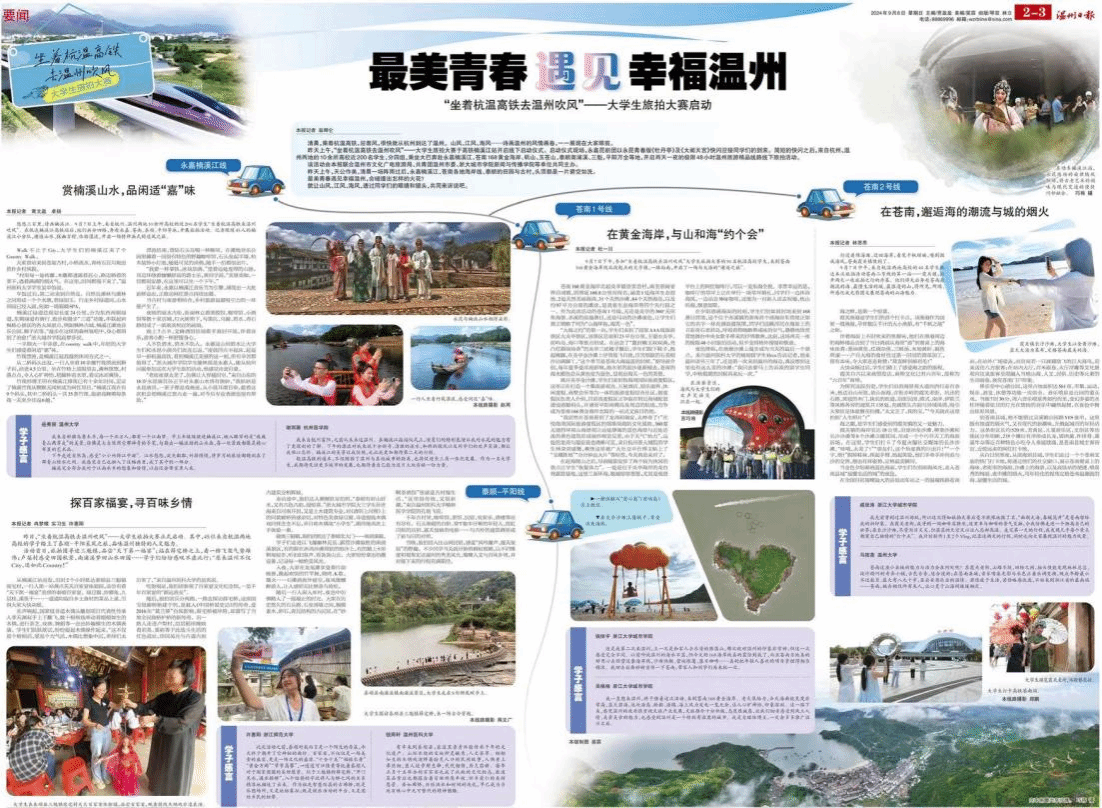 9月7日上午,“坐着杭温高铁去温州吹风”——老员工旅拍大赛于高铁楠溪江站开启线下启动仪式。启动仪式现场,永嘉昆剧团以永昆青春版《牡丹亭》及《大闹天宫》快闪迎接同学们的到来。简短的快闪之后,来自杭州、温州两地的10余所高校近200名员工,分四组,乘坐大巴奔赴永嘉楠溪江,苍南168黄金海岸、矾山、玉苍山,泰顺南浦溪、三魁,平阳万全等地,开启两天一夜的极限48小时温州旅游精品线路线下旅拍活动。